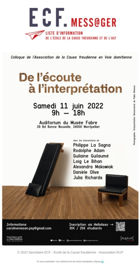 L’affiche a été diffusée par mail via ECF Messager, la liste de diffusion officielle de l’École de la Cause freudienne.