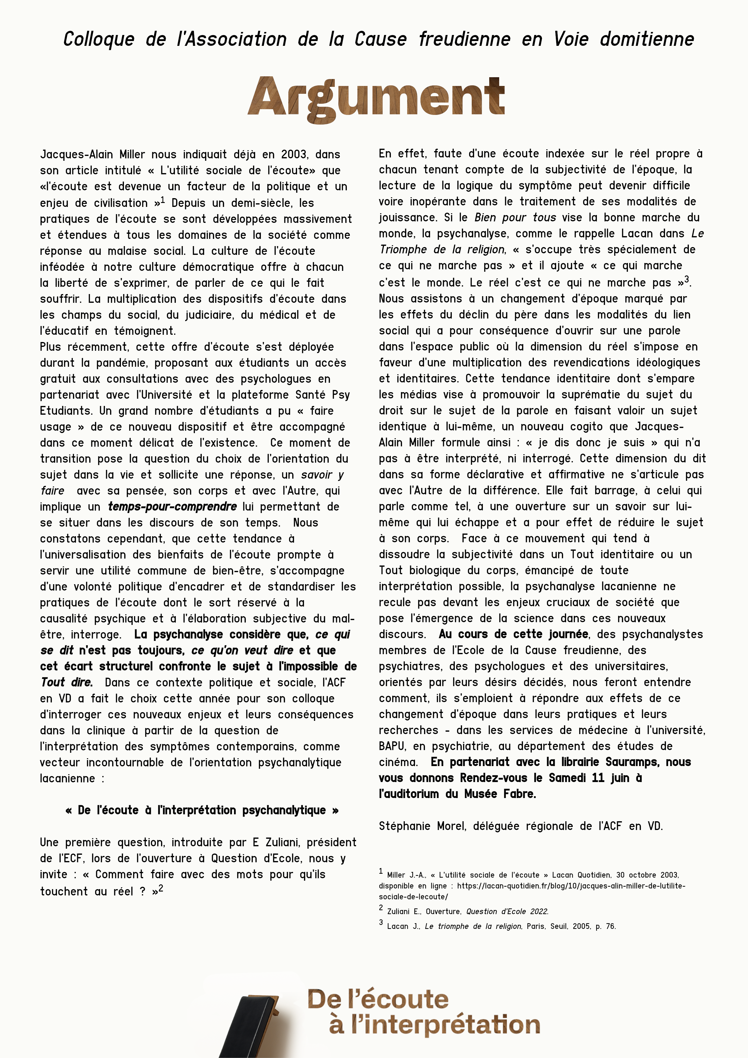 J’ai réalisé l’affiche d’un colloque organisé par l’ACF-VD sur la question de l’inteprétation et la place de la psychanalyse dans la société actuelle, en partenariat avec les libraires Sauramps.