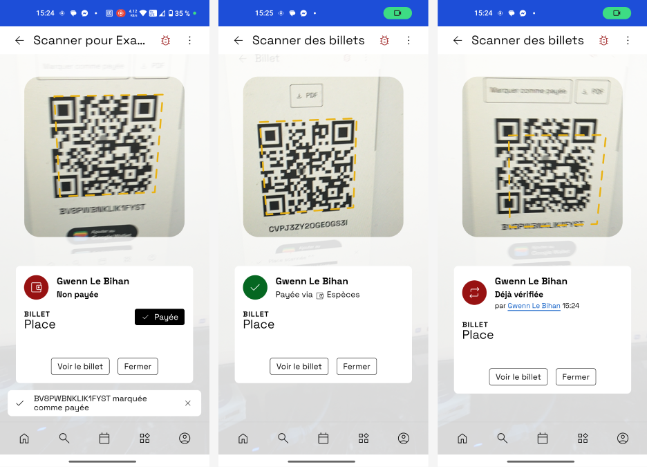 Une fois réservés, les billets sont scannables par les managers via un QR code, que la personne présente à l’entrée de l’évènement
