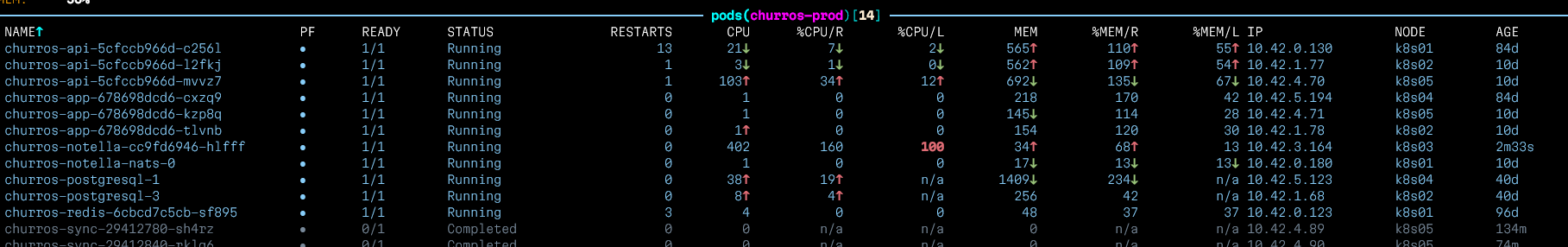 Pods k8s de Churros en production