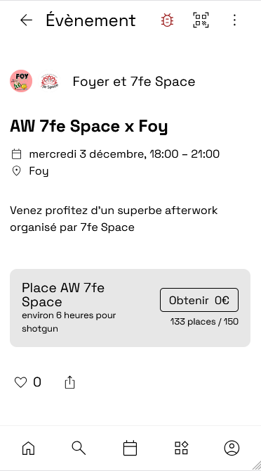 Quand l’AE ou un club organise un évènement, il est visible dans l’application. C’est ici que l’on peut réserver sa place.