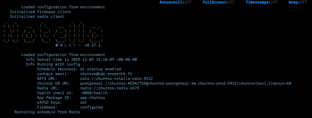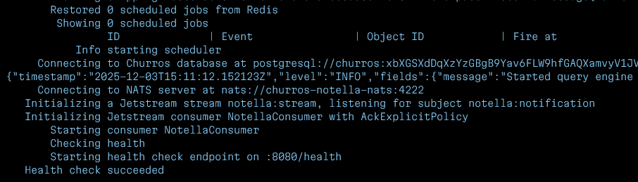 Afin de programmer les notifications et de les envoyer par la suite, un serveur séparé a été développé en Go, en utilisant NATS Jetstream pour communiquer en temps réel avec Churros.
