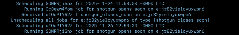 Au moment d’envoyer la notification, Notella récupère l’ensemble des appareils qui ont activé les notifications, détermine à qui envoyer la notification (par exemple, on n’envoie pas une notification “le shotgun se ferme bientôt” aux gens qui ont déjà réservé leur place), et l’envoie via le service push associé à l’appareil (APNS pour Apple, Mozilla pour Firefox, Firebase pour Android, etc.)