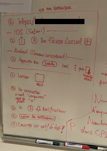 Le support des notifications Push pour les sites web sur iOS était à l’époque très récent. Il fallait s’assurer que ces fameuses notifications fonctionnaient correctement au sein de la population générale, pas simplement sur quelques téléphones. On a donc demandé aux membres organisateurs de l’AE de tester massivement ces notifications, lors d’une de ces périodes de retours.