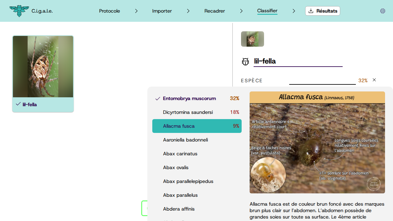 Une application web d’assistance à la recherche en entomologie, en particulier dans le recadrage et la classification de photographies d’insectes.